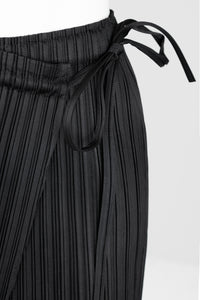 Elevate your style with these chic wrap pants. Featuring a unique wrap panel and crafted from luxurious Plissé Satin, they offer a sleek, elongated silhouette. Perfect for any occasion, from formal events to casual outings.