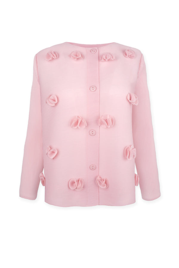 Gloria Flower Embroidered Crystal Pleats Cardigan
