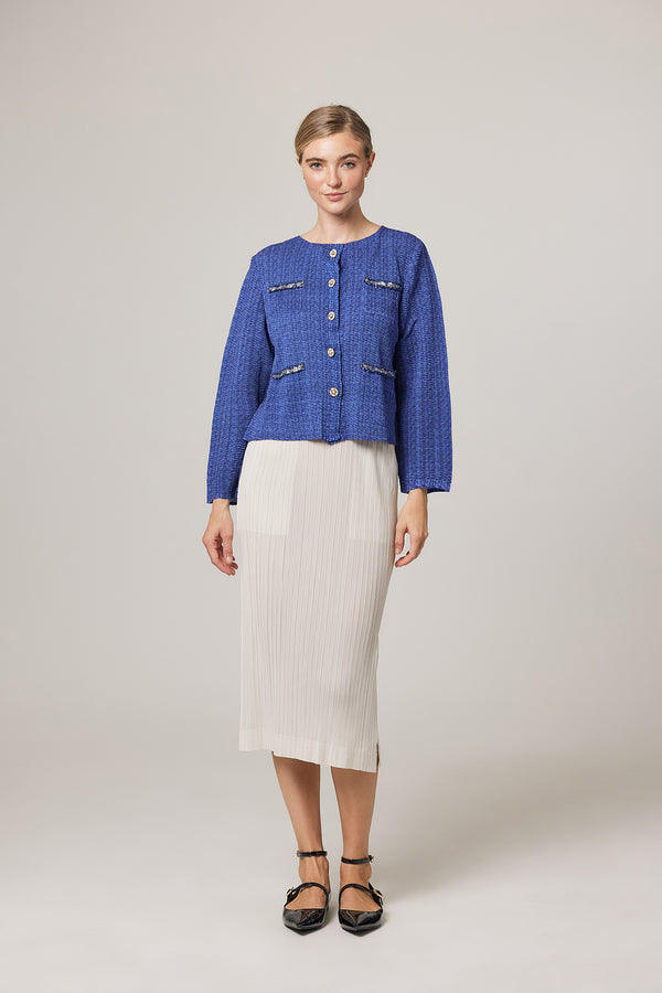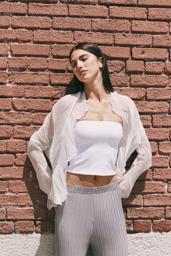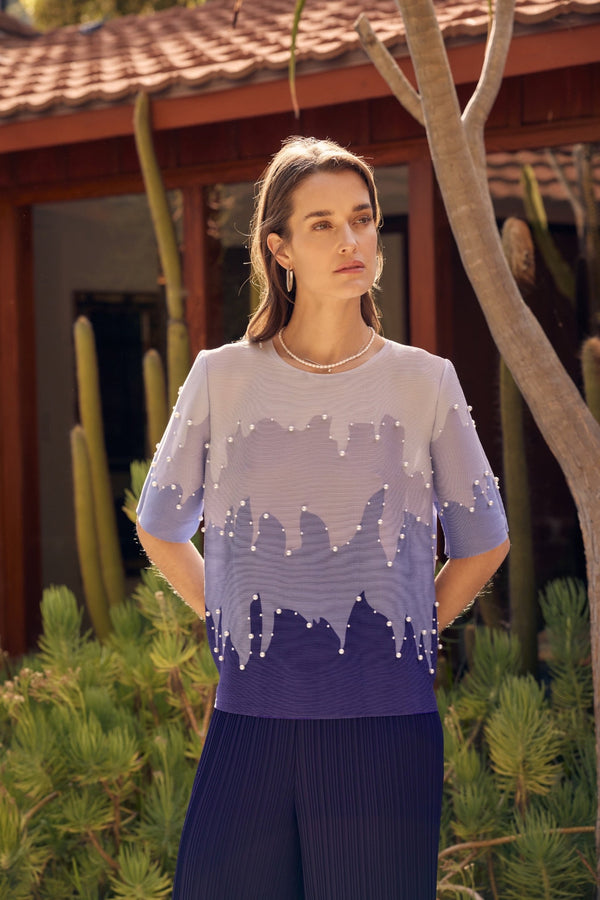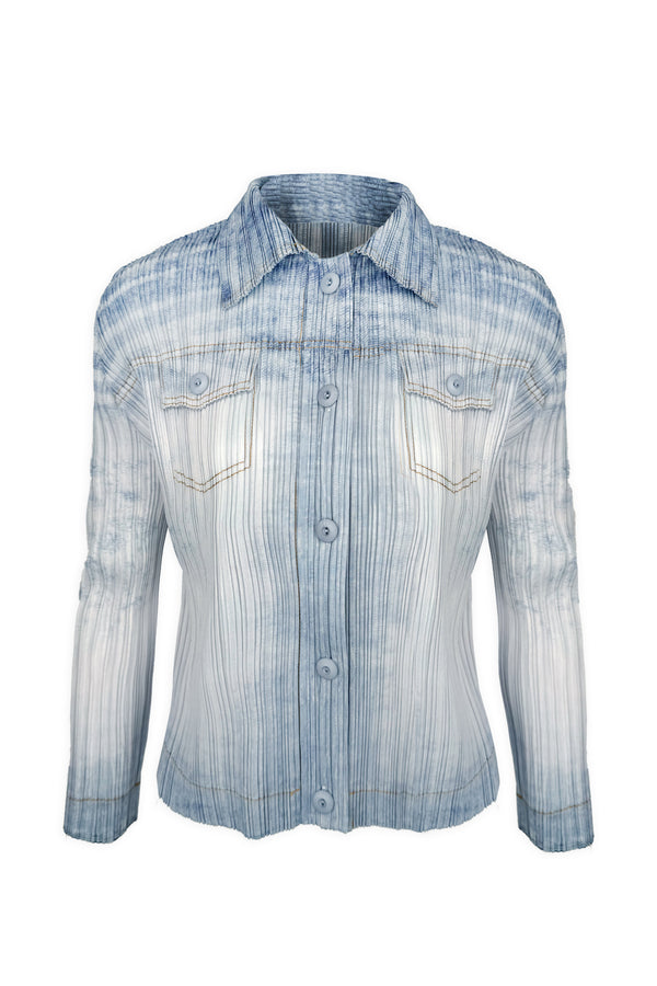 Kennedy Mandarin Collar Crystal Pleats Shirt