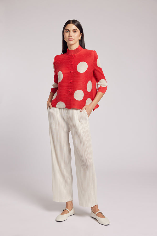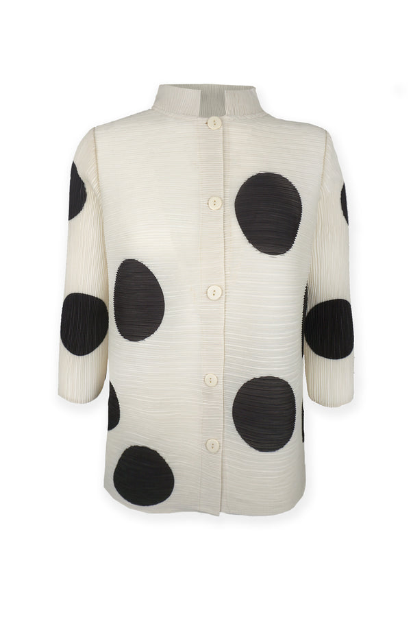 Mari Dot Print Mandarin Collar Crystal Pleats Shirt