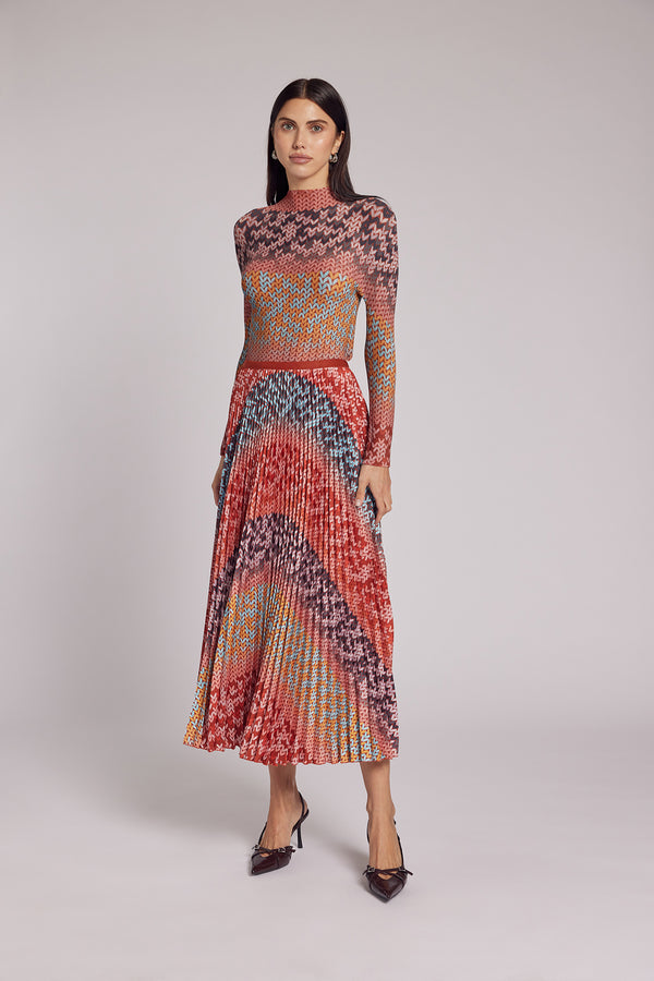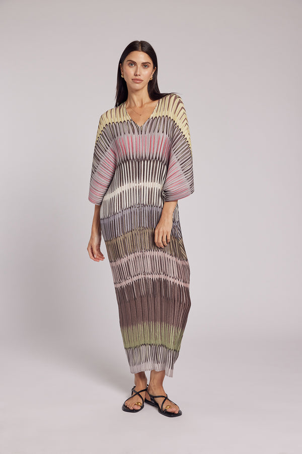 Savanna Painterly Stripes Plissé Kaftan Dress