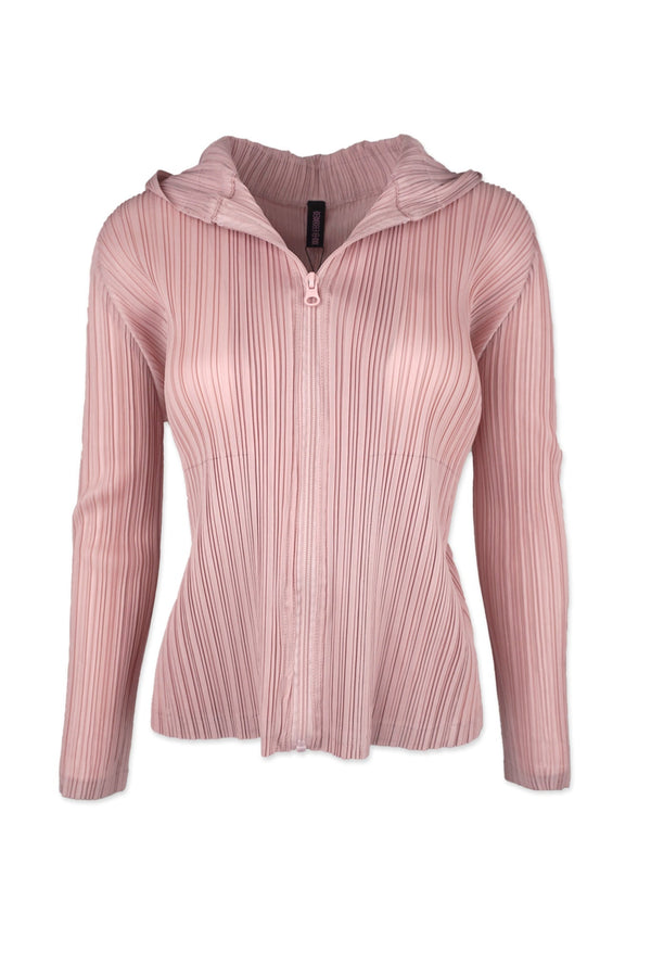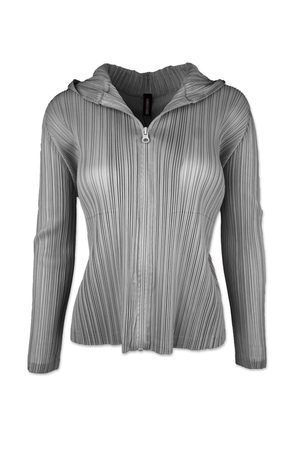 Taylor Plissé Satin Zip-up Hooded Jacket