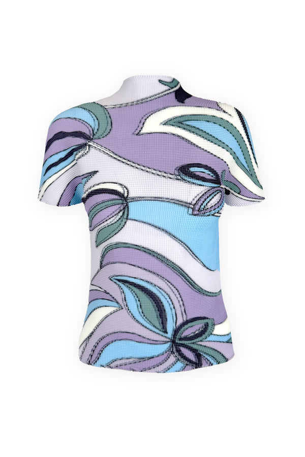 Jasmine Blossom 3D Honeycomb Texture Top - Aqua